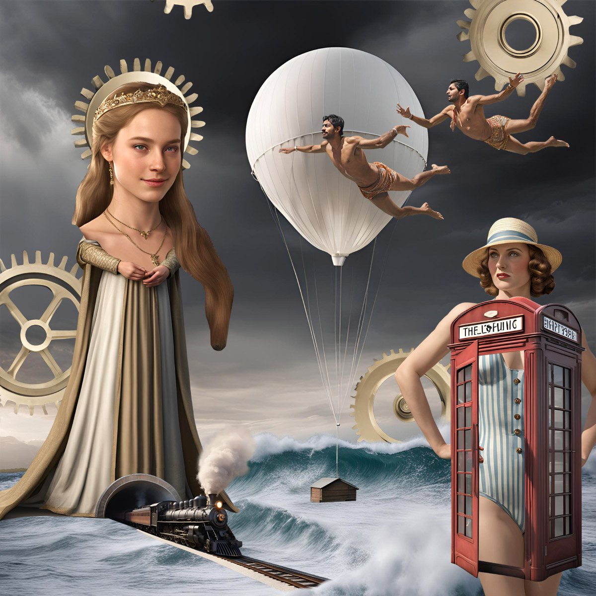 Perhaps the work is less about what’s on the canvas (or screen) than about the faint afterimage it leaves behind. Tattered figures appear, argue among themselves, ceremonially rearrange the furniture, then put it back incorrectly. Meaning arrives late, takes a seat, and is politely ignored. The collage remains, unchanged, as if none of this were its concern.